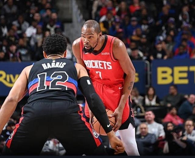 体育赛事-杜兰特32分7板3助 火箭111-104终结活塞4连胜 杜伦18分7板